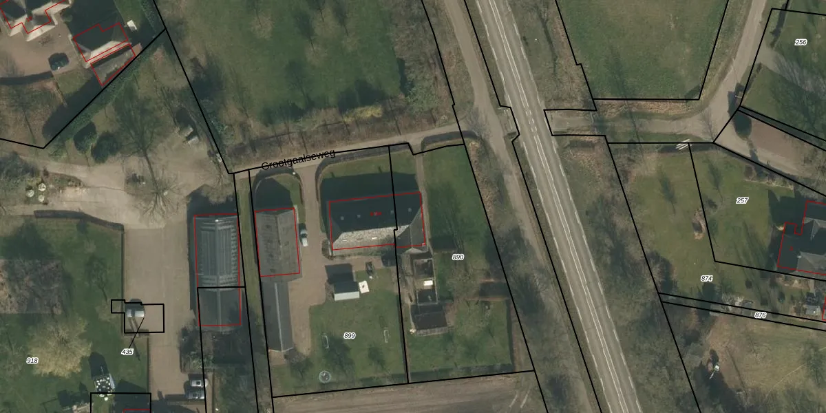 Grootgaalseweg 6 is gelegen op kadastraal perceel SCH03L890. Deze kadastrale aanduiding is uniek en wordt gebruikt door het Kadaster om eigendomsrechten en andere zakelijke rechten vast te leggen. Het perceel maakt onderdeel uit van de kadastrale gemeente Schaijk.