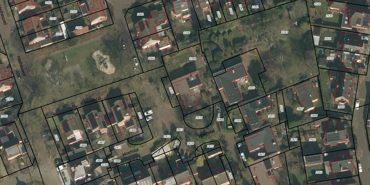 Gebruik de zoekbalk of klik op een perceel voor informatie over de adressen binnen dit perceel.