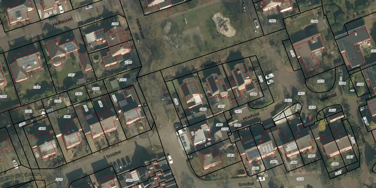 Gebruik de zoekbalk of klik op een perceel voor informatie over de adressen binnen dit perceel.