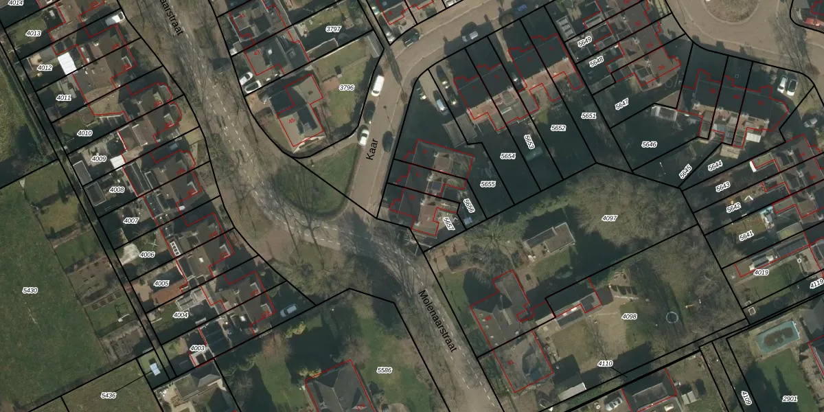 Het perceel waarop Kaar 13 staat heeft een oppervlakte van 202 m². Dit is een middelgroot perceel. De perceeloppervlakte wordt geregistreerd door het Kadaster. Gedetailleerde informatie over de maten van dit perceel kunt u vinden in het rapport Kadastrale kaart met maatvoering van Kaar 13.