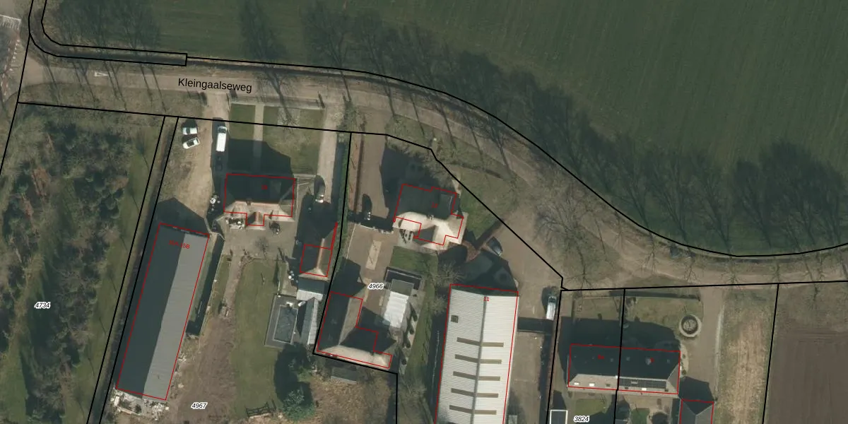 Kleingaalseweg 13 is gelegen op kadastraal perceel SCH03C4966. Deze kadastrale aanduiding is uniek en wordt gebruikt door het Kadaster om eigendomsrechten en andere zakelijke rechten vast te leggen. Het perceel maakt onderdeel uit van de kadastrale gemeente Schaijk.