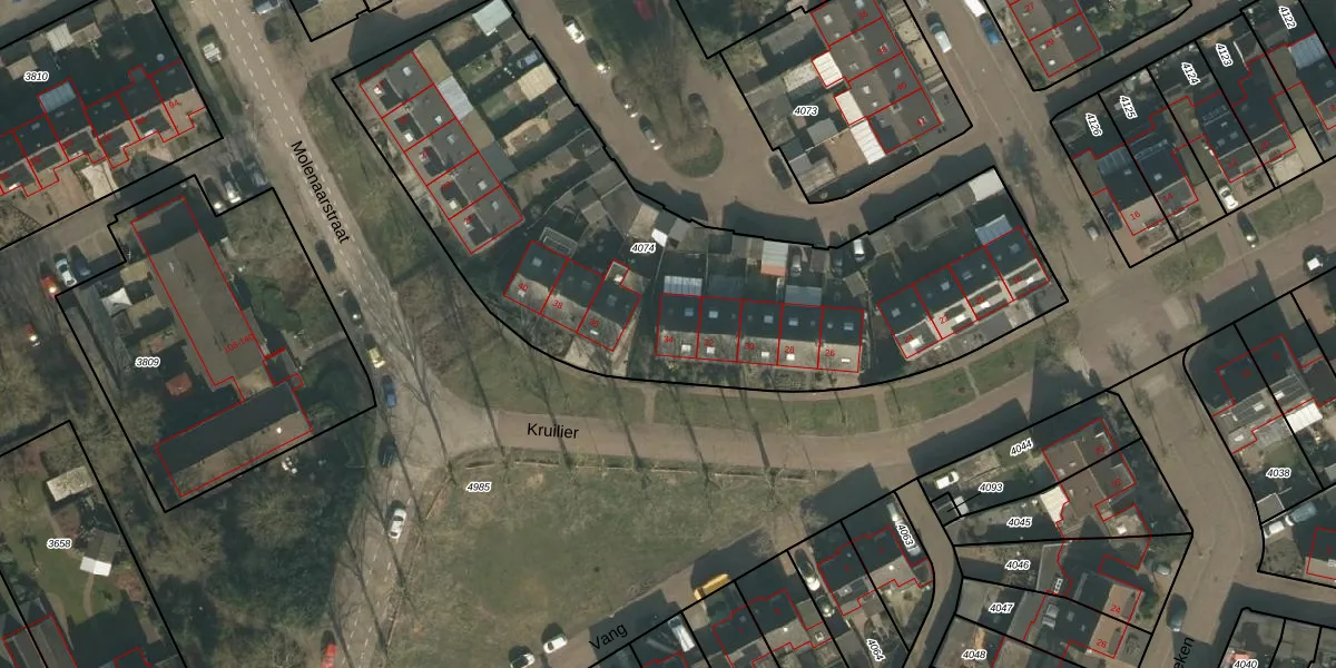Het perceel waarop Kruilier 34 staat heeft een oppervlakte van 2880 m². Dit is een zeer groot perceel. De perceeloppervlakte wordt geregistreerd door het Kadaster. Gedetailleerde informatie over de maten van dit perceel kunt u vinden in het rapport Kadastrale kaart met maatvoering van Kruilier 34.