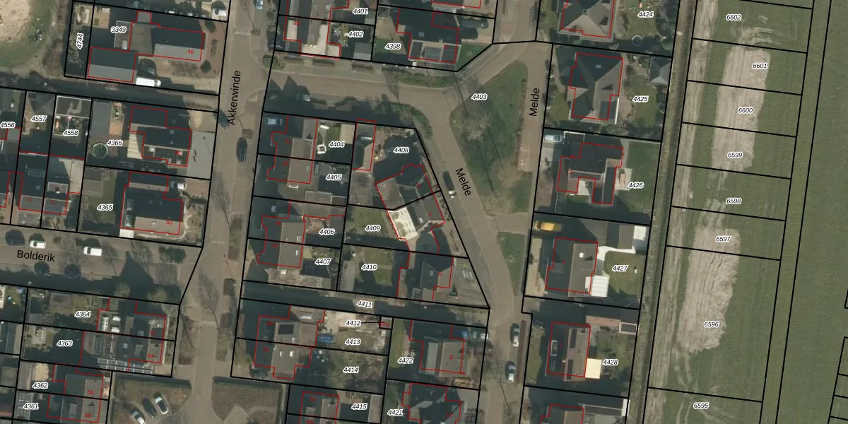 Het perceel waarop Melde 4 staat heeft een oppervlakte van 296 m². Dit is een middelgroot perceel. De perceeloppervlakte wordt geregistreerd door het Kadaster. Gedetailleerde informatie over de maten van dit perceel kunt u vinden in het rapport Kadastrale kaart met maatvoering van Melde 4.