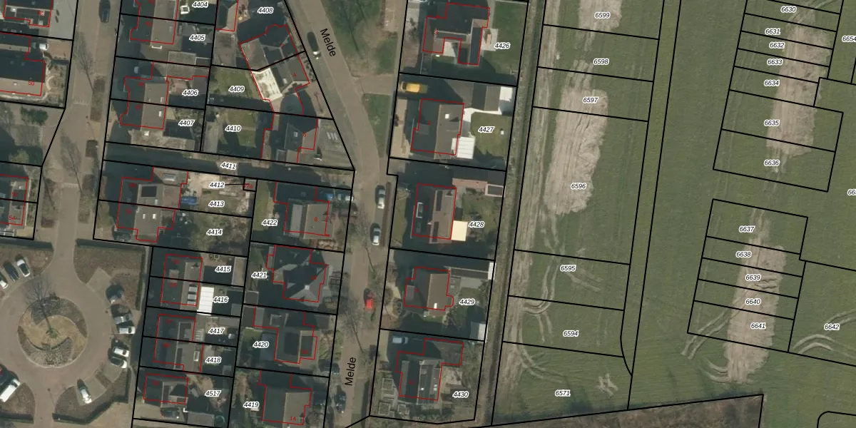 Het perceel waarop Melde 7 staat heeft een oppervlakte van 535 m². Dit is een groot perceel. De perceeloppervlakte wordt geregistreerd door het Kadaster. Gedetailleerde informatie over de maten van dit perceel kunt u vinden in het rapport Kadastrale kaart met maatvoering van Melde 7.