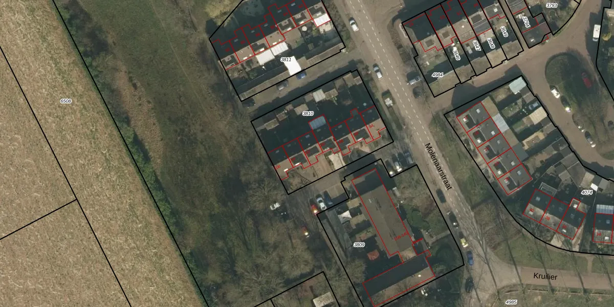 Molenaarstraat 102 is gelegen op kadastraal perceel SCH03C3810. Deze kadastrale aanduiding is uniek en wordt gebruikt door het Kadaster om eigendomsrechten en andere zakelijke rechten vast te leggen. Het perceel maakt onderdeel uit van de kadastrale gemeente Schaijk.