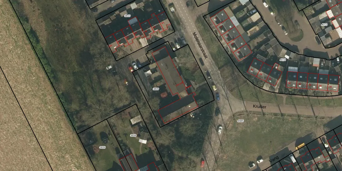 Molenaarstraat 132 is gelegen op kadastraal perceel SCH03C3809. Deze kadastrale aanduiding is uniek en wordt gebruikt door het Kadaster om eigendomsrechten en andere zakelijke rechten vast te leggen. Het perceel maakt onderdeel uit van de kadastrale gemeente Schaijk.