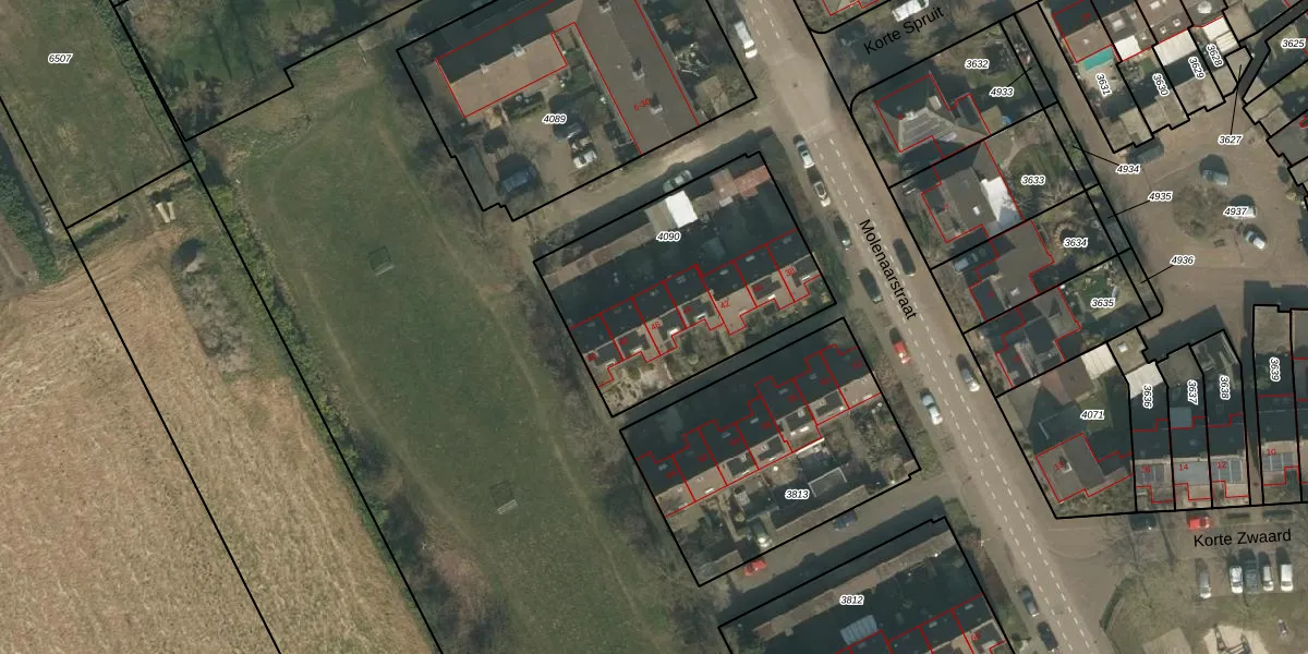 Molenaarstraat 46 is gelegen op kadastraal perceel SCH03C4090. Deze kadastrale aanduiding is uniek en wordt gebruikt door het Kadaster om eigendomsrechten en andere zakelijke rechten vast te leggen. Het perceel maakt onderdeel uit van de kadastrale gemeente Schaijk.