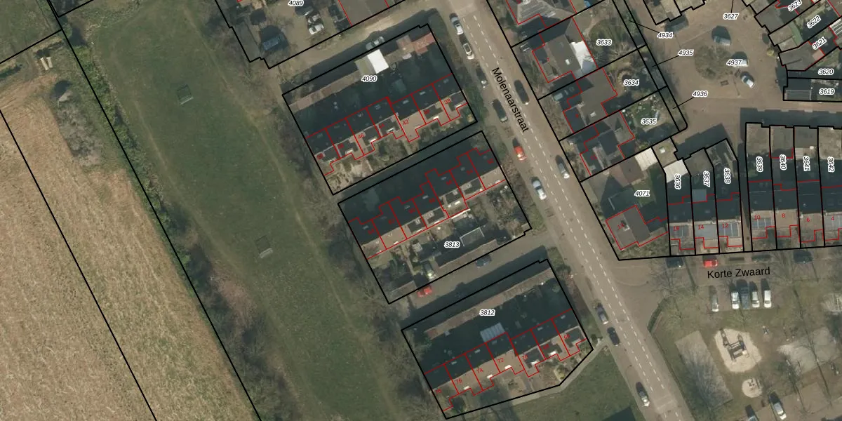 Het perceel waarop Molenaarstraat 58 staat heeft een oppervlakte van 1019 m². Dit is een zeer groot perceel. De perceeloppervlakte wordt geregistreerd door het Kadaster. Gedetailleerde informatie over de maten van dit perceel kunt u vinden in het rapport Kadastrale kaart met maatvoering van Molenaarstraat 58.