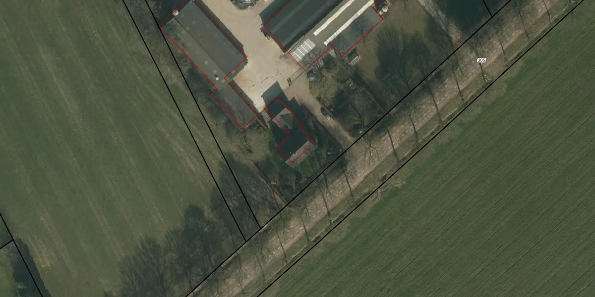 Het adres ligt op het perceel SCH03-H-313, dat zich in de kadastrale gemeente Schaijk bevindt. De oppervlakte van het perceel is 4,1 ha. Dat is groter dan gemiddeld in Schaijk, waar de gemiddelde perceeloppervlakte op 5981,72 m² ligt. De grootste perceeloppervlakte in de kadastrale gemeente is 1,17 km². De kleinste oppervlakte bedraagt 0 m². Dit is het enige adres dat aanwezig is op het perceel. De huidige grenzen van het perceel zijn digitaal in de Basisregistratie Kadaster (BRK) geregistreerd op 30-08-2005.