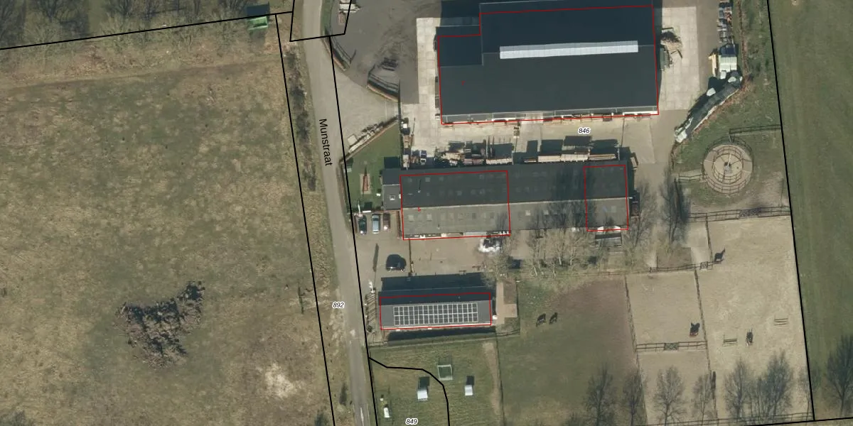Het perceel waarop Munstraat 5 staat heeft een oppervlakte van 1,6 ha. Dit is een zeer groot perceel. De perceeloppervlakte wordt geregistreerd door het Kadaster. Gedetailleerde informatie over de maten van dit perceel kunt u vinden in het rapport Kadastrale kaart met maatvoering van Munstraat 5.
