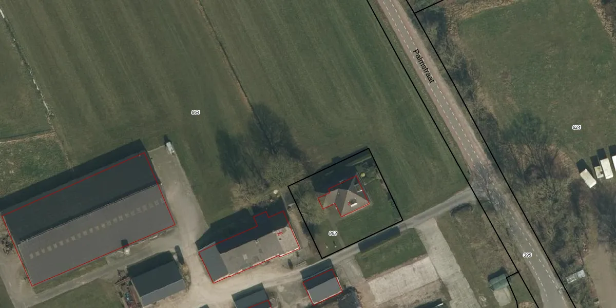 Palmstraat 2-B is gelegen op kadastraal perceel SCH03H864. Deze kadastrale aanduiding is uniek en wordt gebruikt door het Kadaster om eigendomsrechten en andere zakelijke rechten vast te leggen. Het perceel maakt onderdeel uit van de kadastrale gemeente Schaijk.