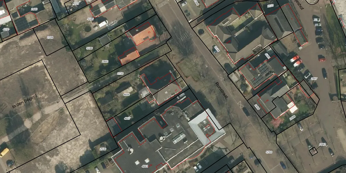 Runstraat 17 is gelegen op kadastraal perceel SCH03C4657. Deze kadastrale aanduiding is uniek en wordt gebruikt door het Kadaster om eigendomsrechten en andere zakelijke rechten vast te leggen. Het perceel maakt onderdeel uit van de kadastrale gemeente Schaijk.