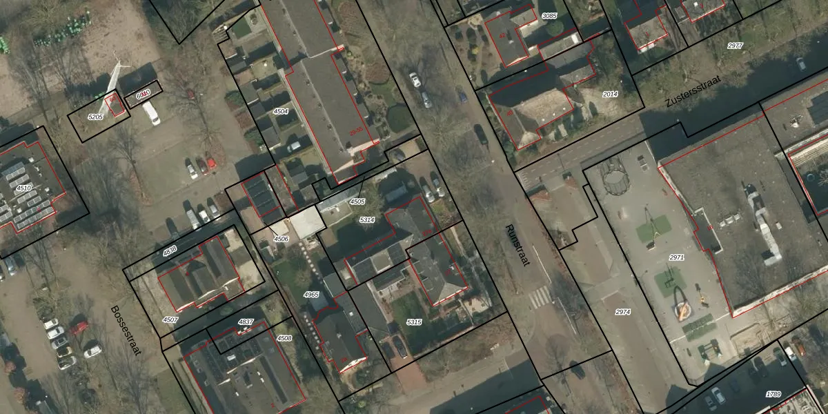 Gebruik de zoekbalk of klik op een perceel voor informatie over de adressen binnen dit perceel.