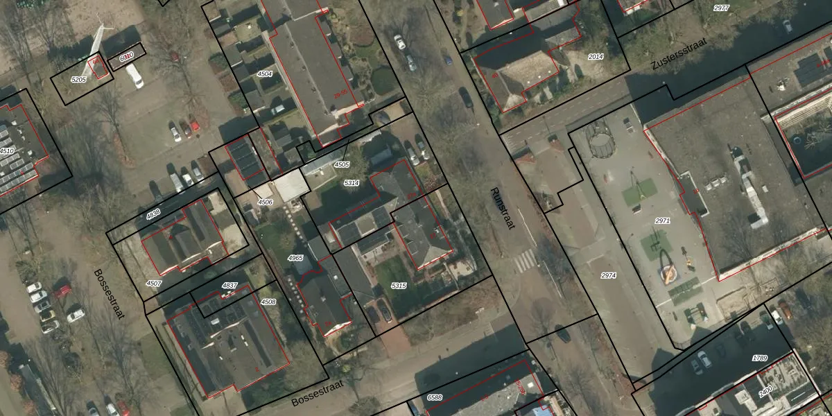 Het perceel waarop Runstraat 27 staat heeft een oppervlakte van 756 m². Dit is een groot perceel. De perceeloppervlakte wordt geregistreerd door het Kadaster. Gedetailleerde informatie over de maten van dit perceel kunt u vinden in het rapport Kadastrale kaart met maatvoering van Runstraat 27.