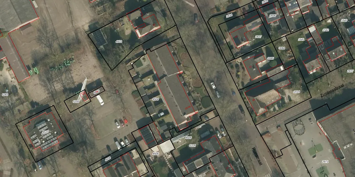 Het perceel waarop Runstraat 37 staat heeft een oppervlakte van 1645 m². Dit is een zeer groot perceel. De perceeloppervlakte wordt geregistreerd door het Kadaster. Gedetailleerde informatie over de maten van dit perceel kunt u vinden in het rapport Kadastrale kaart met maatvoering van Runstraat 37.