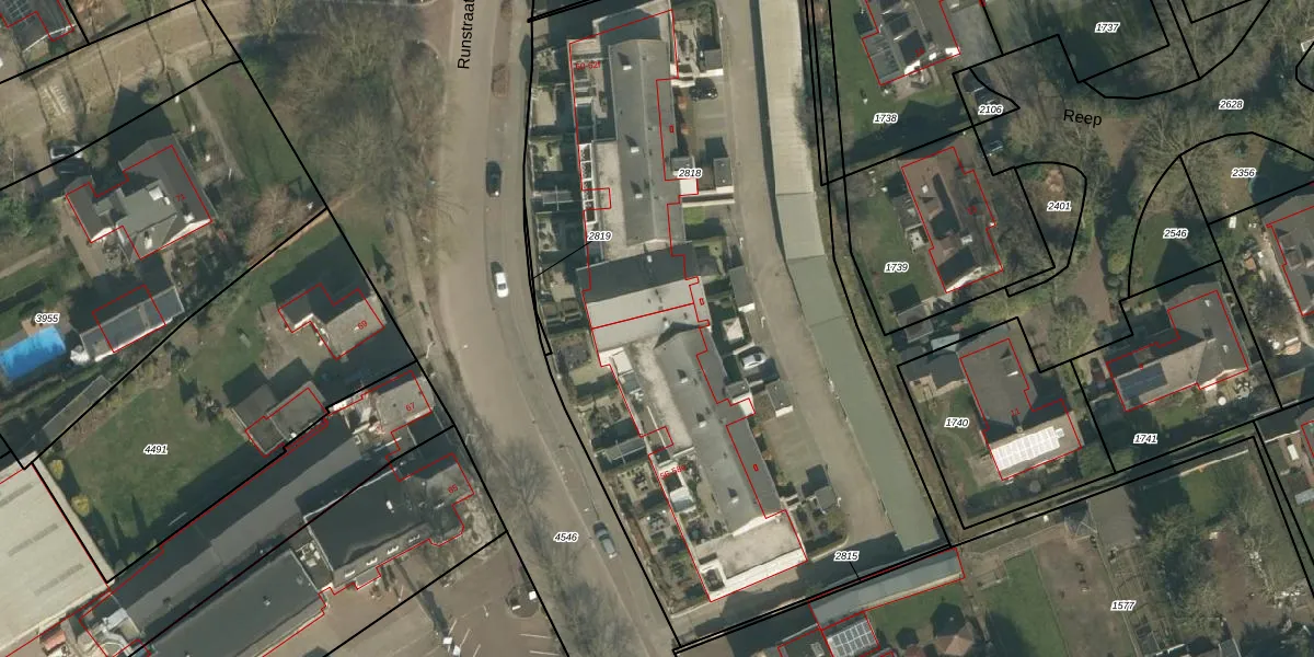 Runstraat 58-e is gelegen op kadastraal perceel SCH03B2818. Deze kadastrale aanduiding is uniek en wordt gebruikt door het Kadaster om eigendomsrechten en andere zakelijke rechten vast te leggen. Het perceel maakt onderdeel uit van de kadastrale gemeente Schaijk.