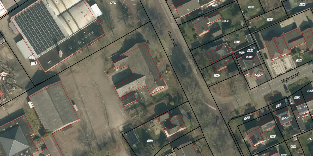 Het perceel waarop Runstraat 59 staat heeft een oppervlakte van 2,9 ha. Dit is een zeer groot perceel. De perceeloppervlakte wordt geregistreerd door het Kadaster. Gedetailleerde informatie over de maten van dit perceel kunt u vinden in het rapport Kadastrale kaart met maatvoering van Runstraat 59.
