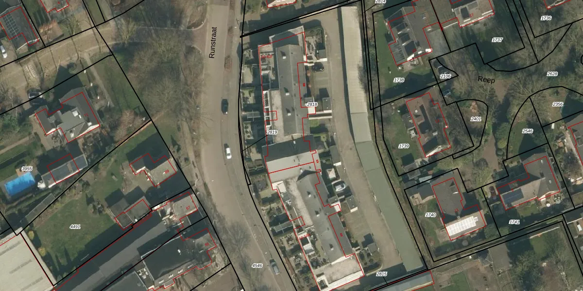Het perceel waarop Runstraat 60-e staat heeft een oppervlakte van 4390 m². Dit is een zeer groot perceel. De perceeloppervlakte wordt geregistreerd door het Kadaster. Gedetailleerde informatie over de maten van dit perceel kunt u vinden in het rapport Kadastrale kaart met maatvoering van Runstraat 60-e.
