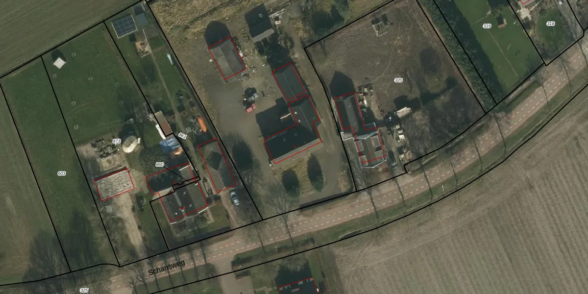 Het perceel waarop Schansweg 4 staat heeft een oppervlakte van 6805 m². Dit is een zeer groot perceel. De perceeloppervlakte wordt geregistreerd door het Kadaster. Gedetailleerde informatie over de maten van dit perceel kunt u vinden in het rapport Kadastrale kaart met maatvoering van Schansweg 4.