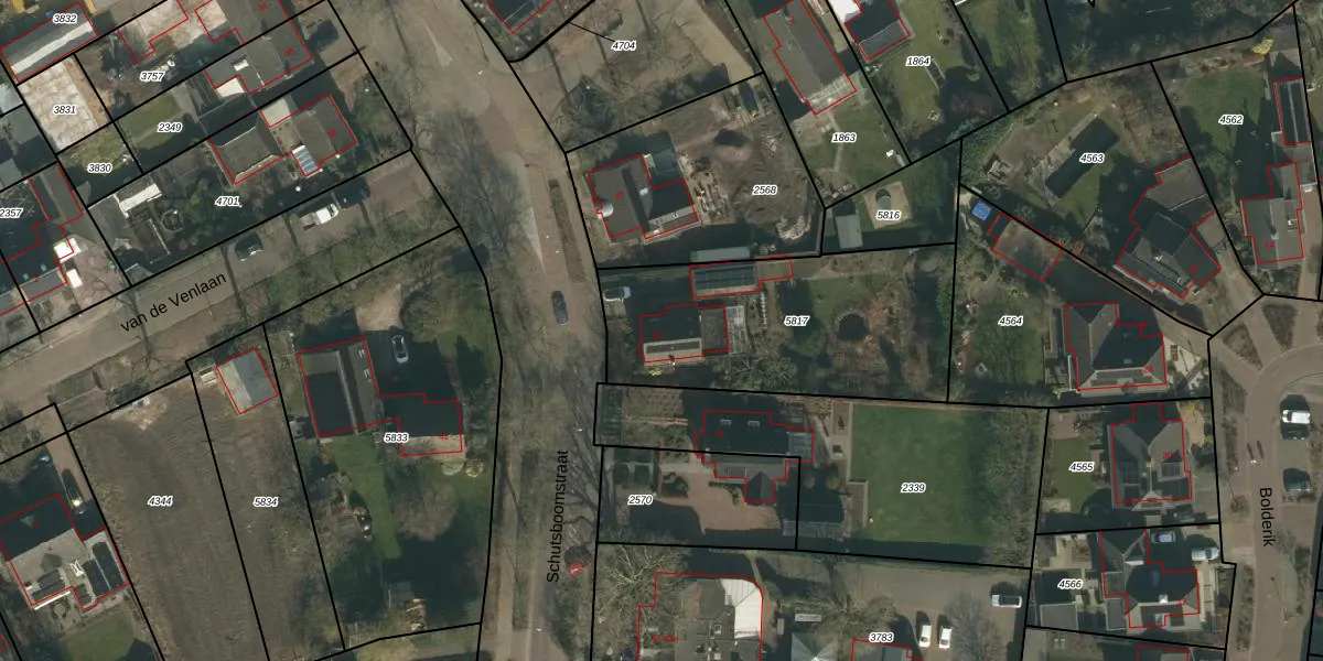 Schutsboomstraat 39 is gelegen op kadastraal perceel SCH03C5817. Deze kadastrale aanduiding is uniek en wordt gebruikt door het Kadaster om eigendomsrechten en andere zakelijke rechten vast te leggen. Het perceel maakt onderdeel uit van de kadastrale gemeente Schaijk.