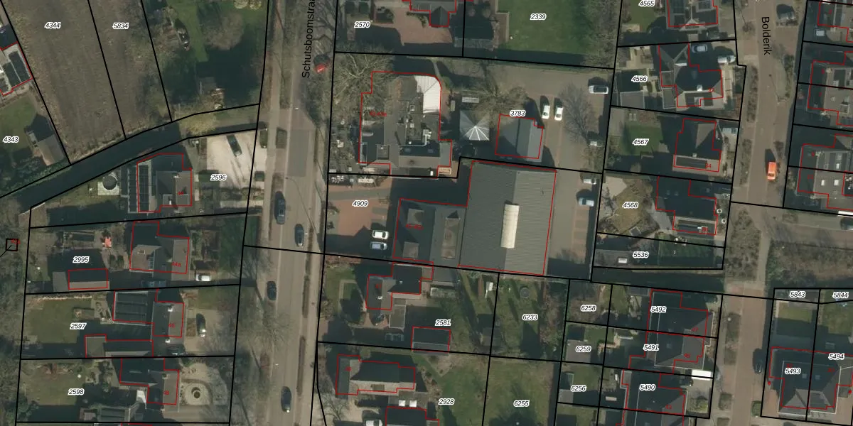 Schutsboomstraat 45-a is gelegen op kadastraal perceel SCH03C4909. Deze kadastrale aanduiding is uniek en wordt gebruikt door het Kadaster om eigendomsrechten en andere zakelijke rechten vast te leggen. Het perceel maakt onderdeel uit van de kadastrale gemeente Schaijk.