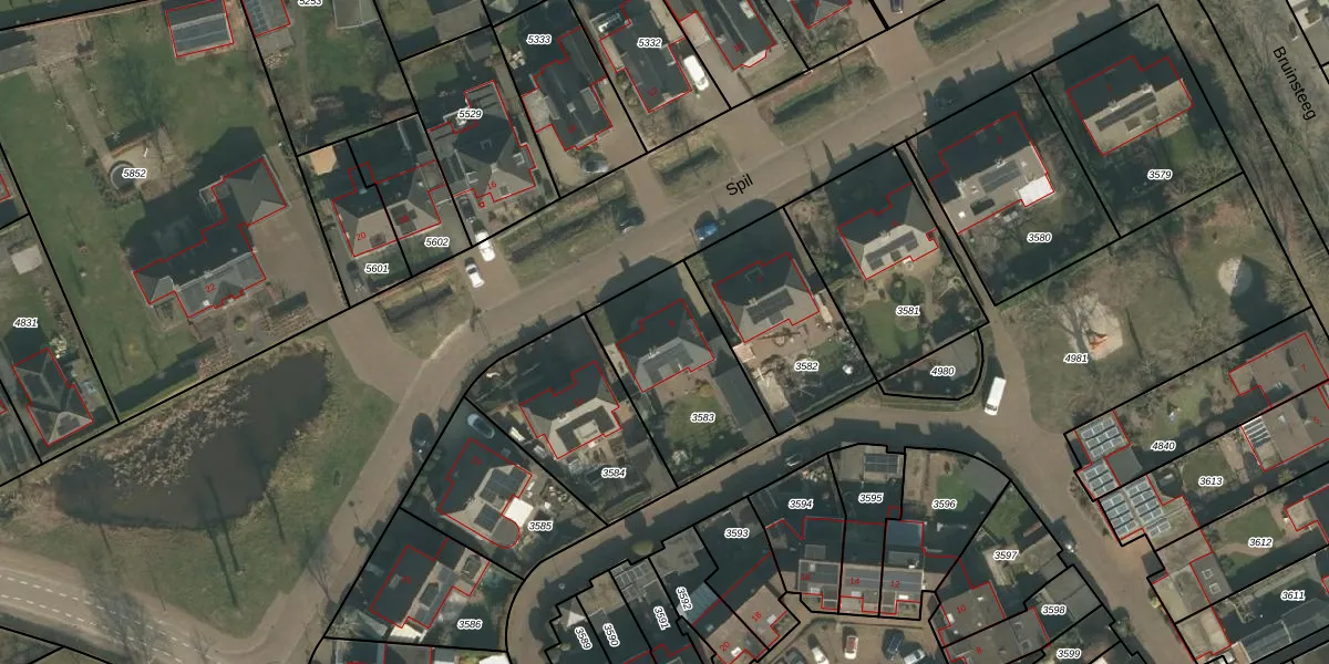 Het perceel waarop Spil 9 staat heeft een oppervlakte van 508 m². Dit is een groot perceel. De perceeloppervlakte wordt geregistreerd door het Kadaster. Gedetailleerde informatie over de maten van dit perceel kunt u vinden in het rapport Kadastrale kaart met maatvoering van Spil 9.