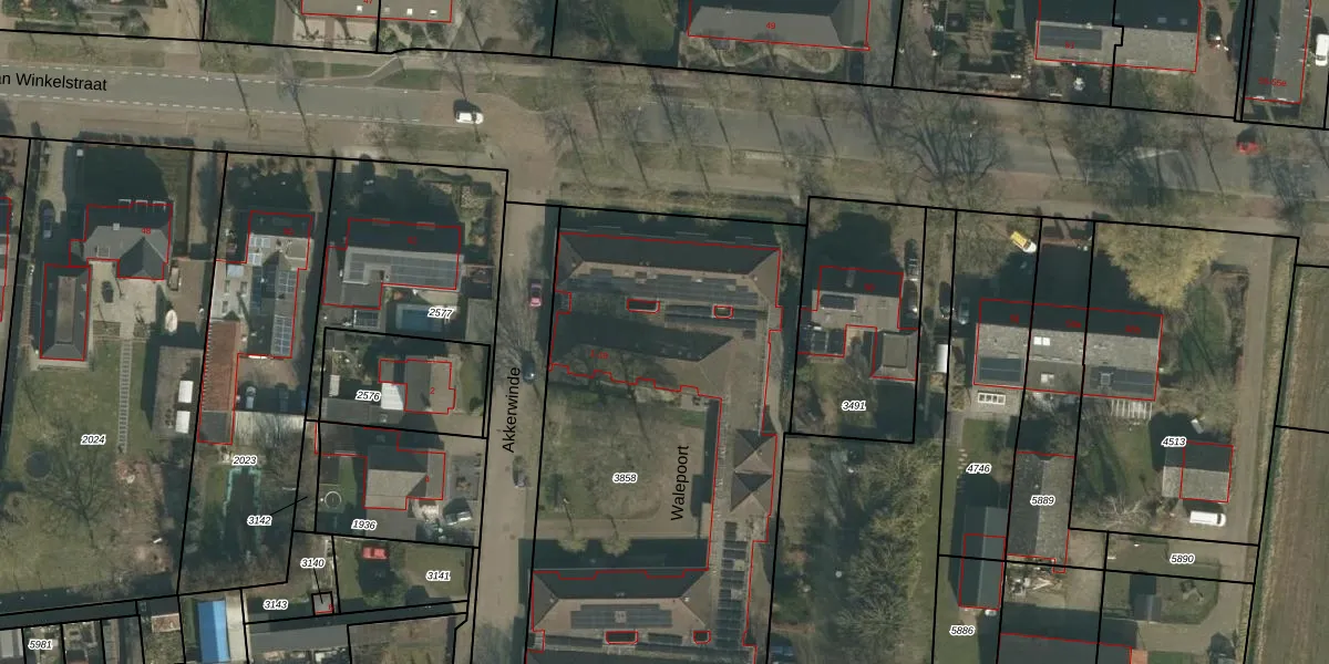 Het perceel waarop Walepoort 15 staat heeft een oppervlakte van 2985 m². Dit is een zeer groot perceel. De perceeloppervlakte wordt geregistreerd door het Kadaster. Gedetailleerde informatie over de maten van dit perceel kunt u vinden in het rapport Kadastrale kaart met maatvoering van Walepoort 15.