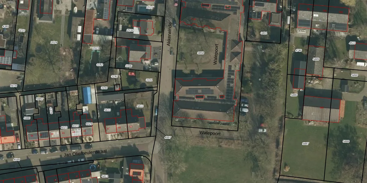 Het perceel waarop Walepoort 4 staat heeft een oppervlakte van 2985 m². Dit is een zeer groot perceel. De perceeloppervlakte wordt geregistreerd door het Kadaster. Gedetailleerde informatie over de maten van dit perceel kunt u vinden in het rapport Kadastrale kaart met maatvoering van Walepoort 4.