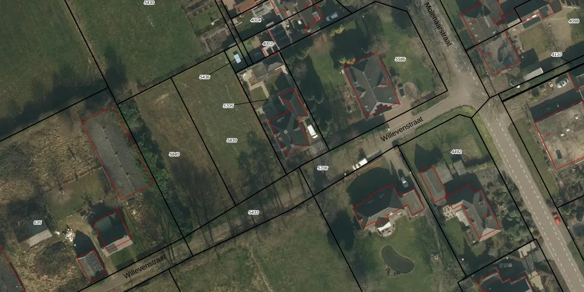 Willevenstraat 2 is gelegen op kadastraal perceel SCH03C5705. Deze kadastrale aanduiding is uniek en wordt gebruikt door het Kadaster om eigendomsrechten en andere zakelijke rechten vast te leggen. Het perceel maakt onderdeel uit van de kadastrale gemeente Schaijk.