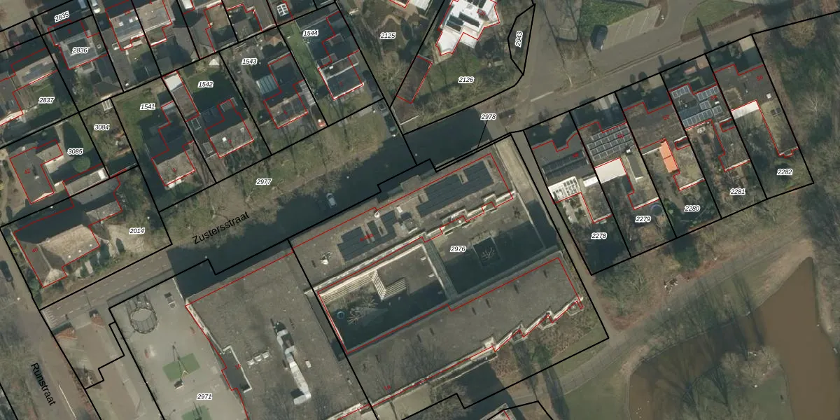 Zustersstraat 32 is gelegen op kadastraal perceel SCH03B2976. Deze kadastrale aanduiding is uniek en wordt gebruikt door het Kadaster om eigendomsrechten en andere zakelijke rechten vast te leggen. Het perceel maakt onderdeel uit van de kadastrale gemeente Schaijk.