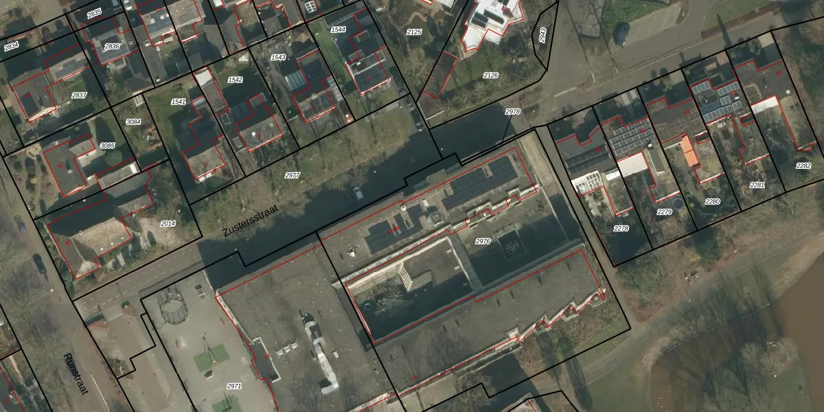 Zustersstraat 4 is gelegen op kadastraal perceel SCH03B2976. Deze kadastrale aanduiding is uniek en wordt gebruikt door het Kadaster om eigendomsrechten en andere zakelijke rechten vast te leggen. Het perceel maakt onderdeel uit van de kadastrale gemeente Schaijk.