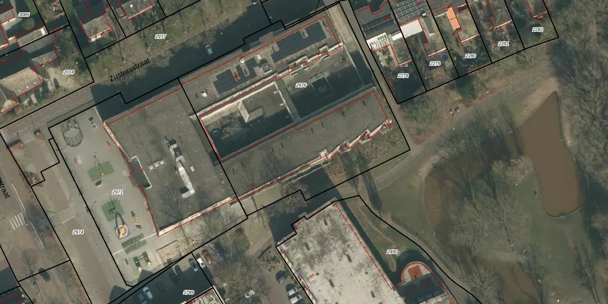 Het perceel waarop Zustersstraat 4-k9 staat heeft een oppervlakte van 3125 m². Dit is een zeer groot perceel. De perceeloppervlakte wordt geregistreerd door het Kadaster. Gedetailleerde informatie over de maten van dit perceel kunt u vinden in het rapport Kadastrale kaart met maatvoering van Zustersstraat 4-k9.