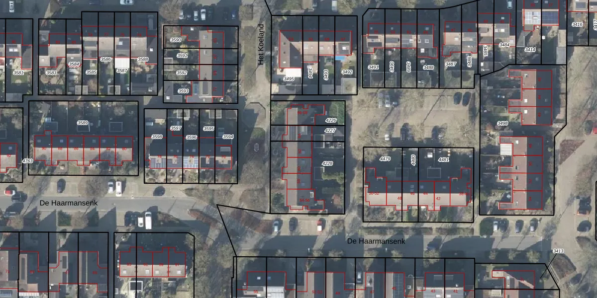Het perceel waarop De Haarmansenk 62 staat heeft een oppervlakte van 607 m². Dit is een groot perceel. De perceeloppervlakte wordt geregistreerd door het Kadaster. Gedetailleerde informatie over de maten van dit perceel kunt u vinden in het rapport Kadastrale kaart met maatvoering van De Haarmansenk 62.