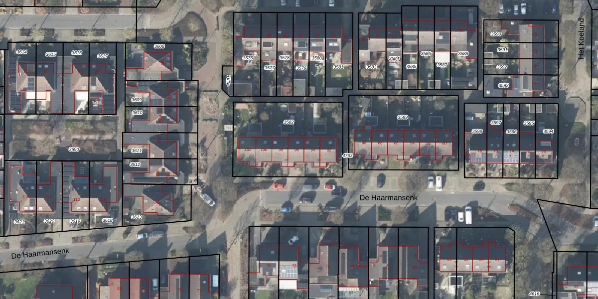 Het perceel waarop De Haarmansenk 96 staat heeft een oppervlakte van 917 m². Dit is een groot perceel. De perceeloppervlakte wordt geregistreerd door het Kadaster. Gedetailleerde informatie over de maten van dit perceel kunt u vinden in het rapport Kadastrale kaart met maatvoering van De Haarmansenk 96.