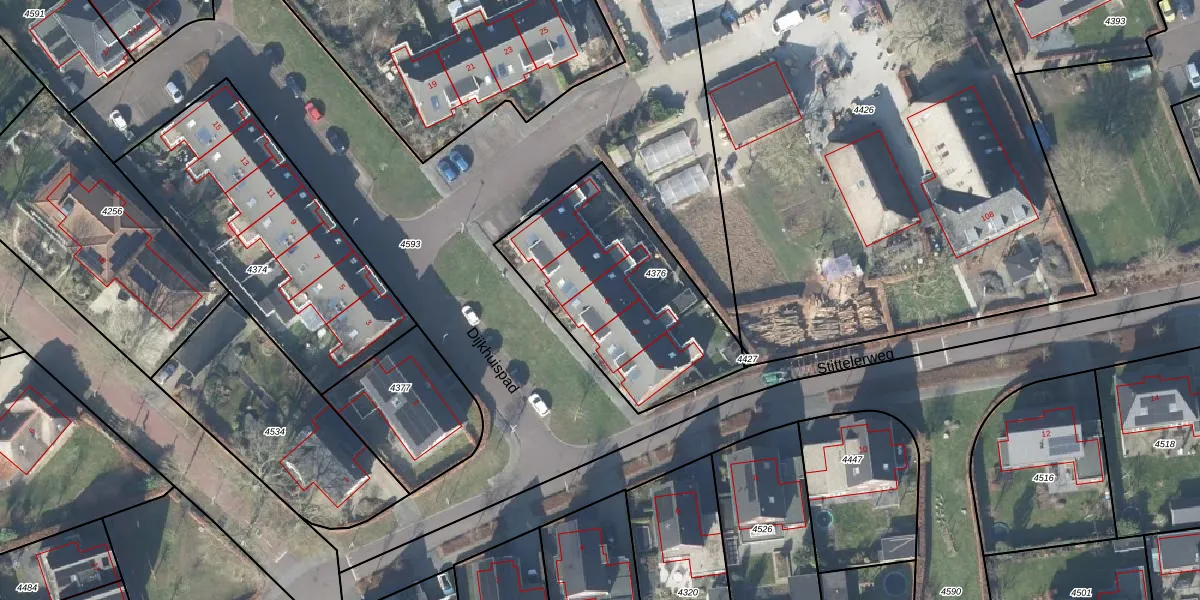 Dijkhuispad 6 is gelegen op kadastraal perceel DPV00H4376. Deze kadastrale aanduiding is uniek en wordt gebruikt door het Kadaster om eigendomsrechten en andere zakelijke rechten vast te leggen. Het perceel maakt onderdeel uit van de kadastrale gemeente Diepenveen.