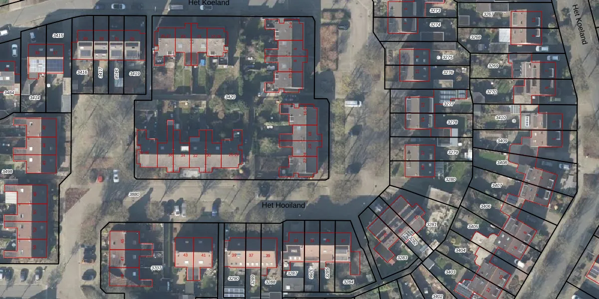 Het perceel waarop Het Hooiland 20 staat heeft een oppervlakte van 3256 m². Dit is een zeer groot perceel. De perceeloppervlakte wordt geregistreerd door het Kadaster. Gedetailleerde informatie over de maten van dit perceel kunt u vinden in het rapport Kadastrale kaart met maatvoering van Het Hooiland 20.