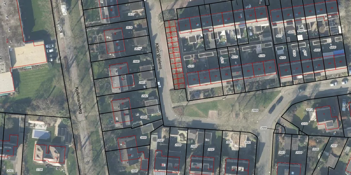 Klein Wielens 19-G-1 is gelegen op kadastraal perceel DPV00D4243. Deze kadastrale aanduiding is uniek en wordt gebruikt door het Kadaster om eigendomsrechten en andere zakelijke rechten vast te leggen. Het perceel maakt onderdeel uit van de kadastrale gemeente Diepenveen.