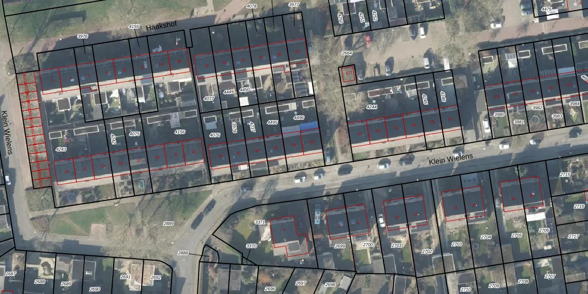 Het perceel waarop Klein Wielens 43 staat heeft een oppervlakte van 313 m². Dit is een groot perceel. De perceeloppervlakte wordt geregistreerd door het Kadaster. Gedetailleerde informatie over de maten van dit perceel kunt u vinden in het rapport Kadastrale kaart met maatvoering van Klein Wielens 43.