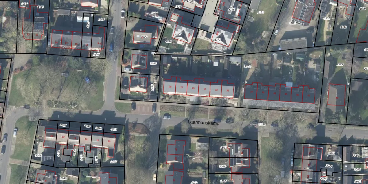 Het perceel waarop Laarmanskamp 27 staat heeft een oppervlakte van 2643 m². Dit is een zeer groot perceel. De perceeloppervlakte wordt geregistreerd door het Kadaster. Gedetailleerde informatie over de maten van dit perceel kunt u vinden in het rapport Kadastrale kaart met maatvoering van Laarmanskamp 27.