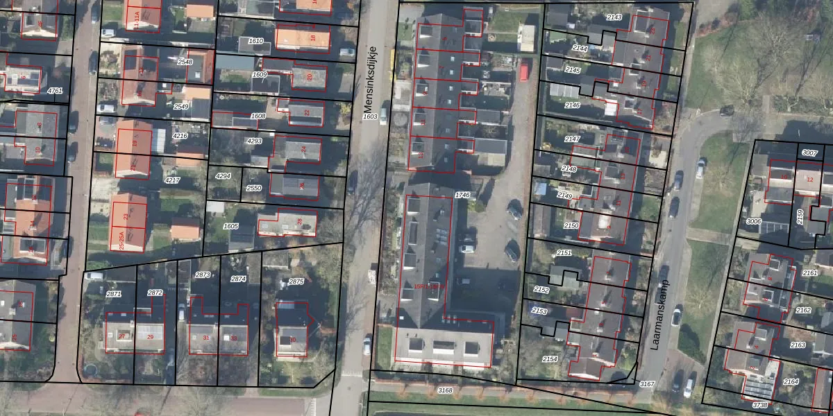Het perceel waarop Mensinksdijkje 15-F-1 staat heeft een oppervlakte van 3160 m². Dit is een zeer groot perceel. De perceeloppervlakte wordt geregistreerd door het Kadaster. Gedetailleerde informatie over de maten van dit perceel kunt u vinden in het rapport Kadastrale kaart met maatvoering van Mensinksdijkje 15-F-1.