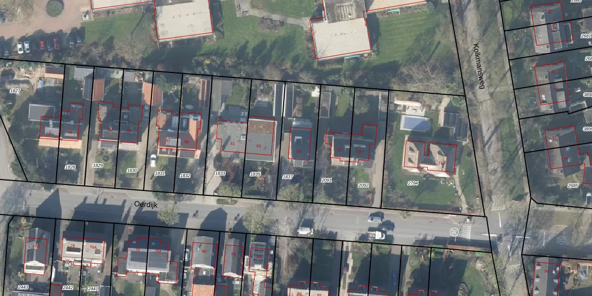 Het perceel waarop Oerdijk 65 staat heeft een oppervlakte van 479 m². Dit is een groot perceel. De perceeloppervlakte wordt geregistreerd door het Kadaster. Gedetailleerde informatie over de maten van dit perceel kunt u vinden in het rapport Kadastrale kaart met maatvoering van Oerdijk 65.