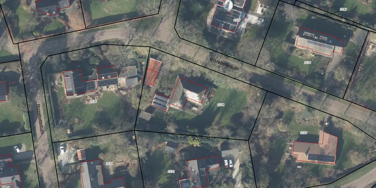 Rozebotteltuin 6 is gelegen op kadastraal perceel DPV00D2134. Deze kadastrale aanduiding is uniek en wordt gebruikt door het Kadaster om eigendomsrechten en andere zakelijke rechten vast te leggen. Het perceel maakt onderdeel uit van de kadastrale gemeente Diepenveen.