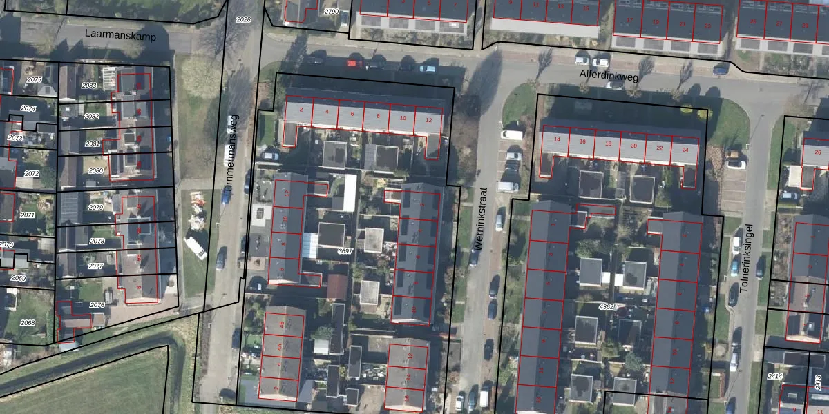 Het perceel waarop Werninkstraat 2 staat heeft een oppervlakte van 3948 m². Dit is een zeer groot perceel. De perceeloppervlakte wordt geregistreerd door het Kadaster. Gedetailleerde informatie over de maten van dit perceel kunt u vinden in het rapport Kadastrale kaart met maatvoering van Werninkstraat 2.