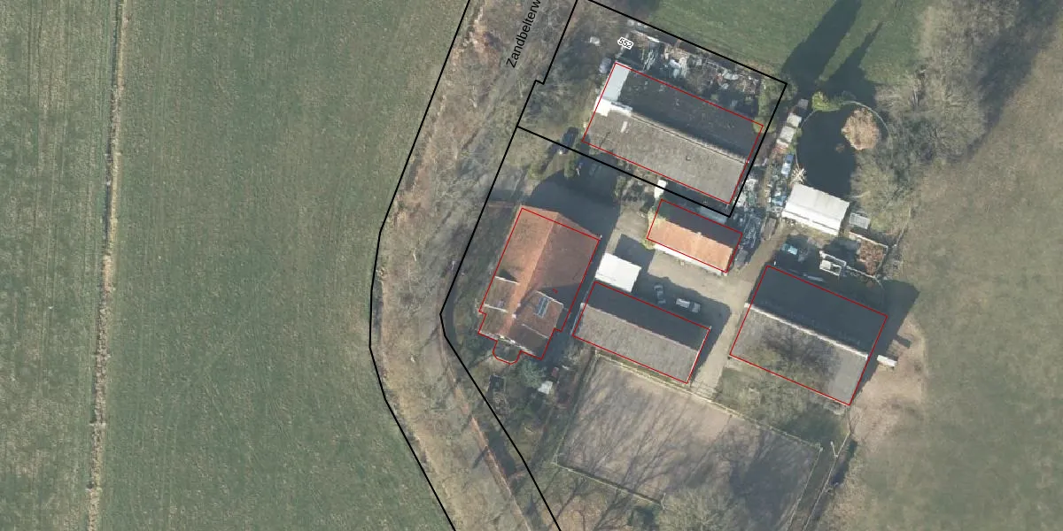 Het perceel waarop Zandbelterweg 2 staat heeft een oppervlakte van 2,9 ha. Dit is een zeer groot perceel. De perceeloppervlakte wordt geregistreerd door het Kadaster. Gedetailleerde informatie over de maten van dit perceel kunt u vinden in het rapport Kadastrale kaart met maatvoering van Zandbelterweg 2.