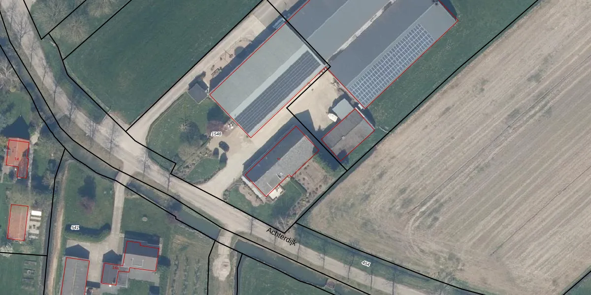 Het perceel waarop Achterdijk 5 staat heeft een oppervlakte van 3065 m². Dit is een zeer groot perceel. De perceeloppervlakte wordt geregistreerd door het Kadaster. Gedetailleerde informatie over de maten van dit perceel kunt u vinden in het rapport Kadastrale kaart met maatvoering van Achterdijk 5.