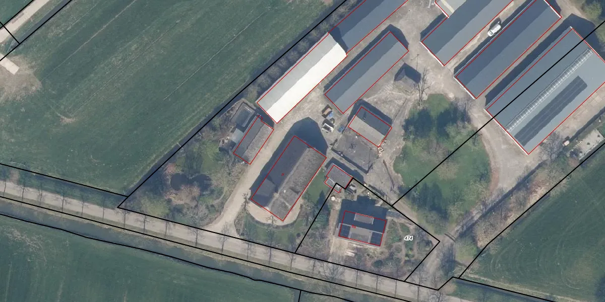Het perceel waarop het adres ligt is HTN04-I-475. De afkorting 'HTN04' staat voor kadastrale gemeente Houten. Het perceel is met 2,5 ha relatief groot. Het gemiddelde ligt in de kadastrale gemeente Houten op 2872,16 m². De grootste perceeloppervlakte in de kadastrale gemeente is 45,3 ha. De kleinste oppervlakte bedraagt 0 m². Dit is het enige adres dat aanwezig is op het perceel. De huidige grenzen van het perceel zijn digitaal in de Basisregistratie Kadaster (BRK) geregistreerd op 13-06-2000.