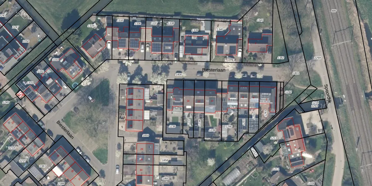 Het perceel waarop Biesterlaan 14 staat heeft een oppervlakte van 174 m². Dit is een middelgroot perceel. De perceeloppervlakte wordt geregistreerd door het Kadaster. Gedetailleerde informatie over de maten van dit perceel kunt u vinden in het rapport Kadastrale kaart met maatvoering van Biesterlaan 14.