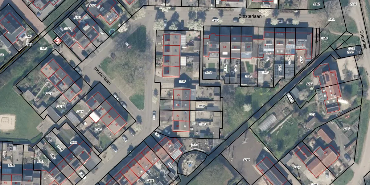 Biesterlaan 26 is gelegen op kadastraal perceel HTN04I1859. Deze kadastrale aanduiding is uniek en wordt gebruikt door het Kadaster om eigendomsrechten en andere zakelijke rechten vast te leggen. Het perceel maakt onderdeel uit van de kadastrale gemeente Houten.