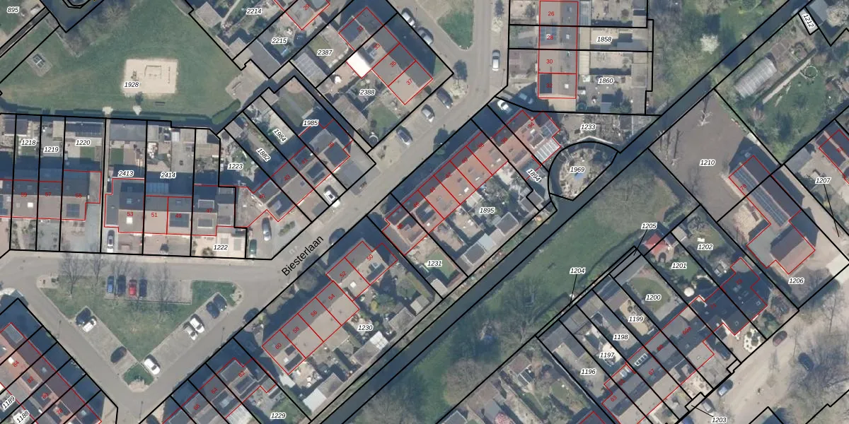 Biesterlaan 46 is gelegen op kadastraal perceel HTN04I1895. Deze kadastrale aanduiding is uniek en wordt gebruikt door het Kadaster om eigendomsrechten en andere zakelijke rechten vast te leggen. Het perceel maakt onderdeel uit van de kadastrale gemeente Houten.