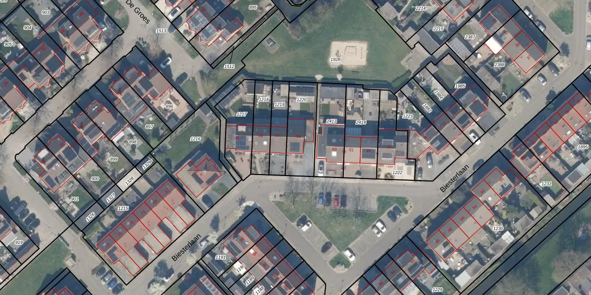 Gebruik de zoekbalk of klik op een perceel voor informatie over de adressen binnen dit perceel.